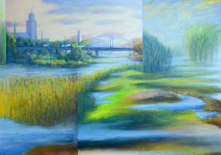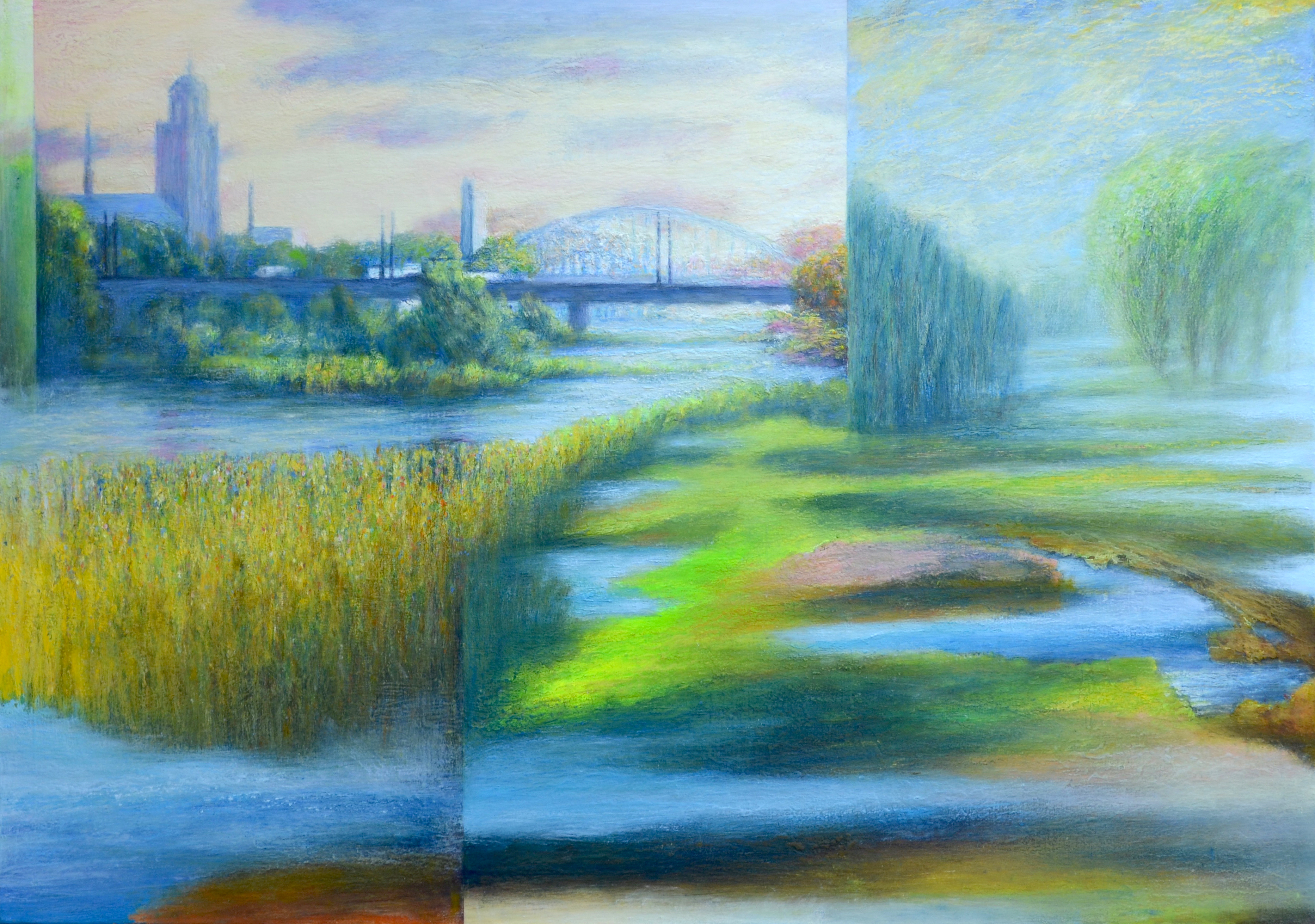 "Deventer - Water-Land" (2016) - 130 x 180 cm - gemengde techniek op doek