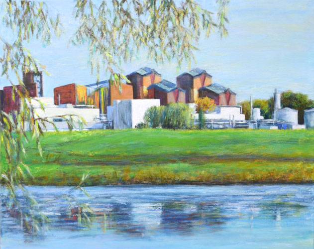 "Deventer - IJsseloever 1" (2013) - 80 x 100 cm - gemengde techniek op doek