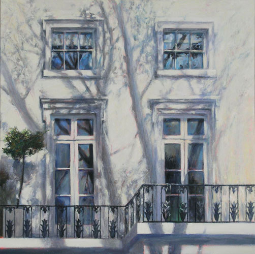 "Londen - Schaduwgevel" (2010) - 90 x 90 cm - gemengde techniek op doek