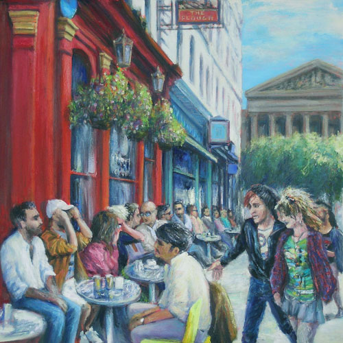 "Londen - Happy go lucky" (2010) - 90 x 90 cm - gemengde techniek op doek