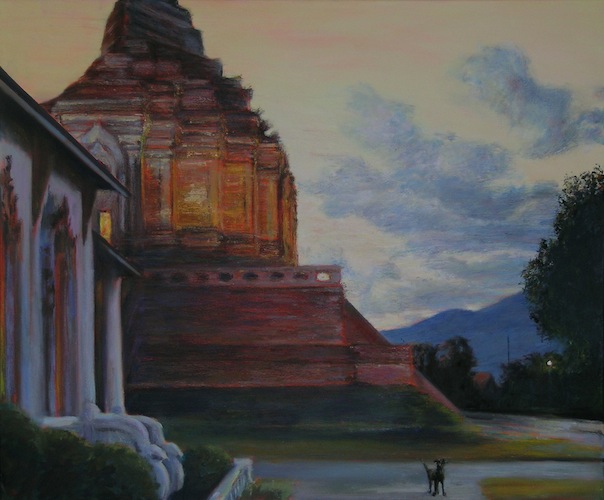 "Thailand - Tempelschemering" (2010) - 100 x 120 cm - gemengde techniek op doek