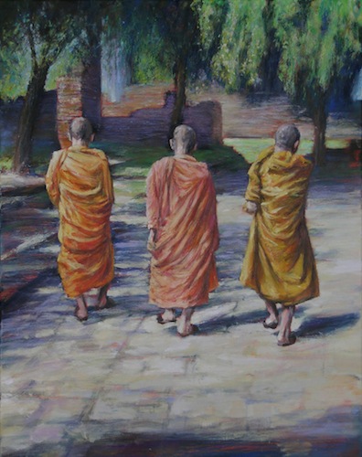 "Thailand - Monnikenpad" (2010) - 100 x 80 cm - gemengde techniek op doek
