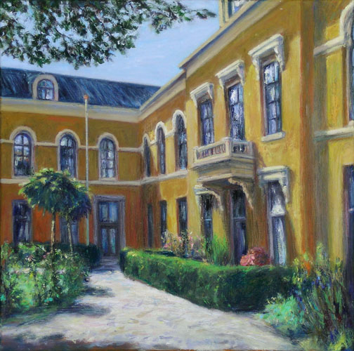 "Deventer - Stadspaleis" (2009) - 70 x 70 cm - gemengde techniek op doek