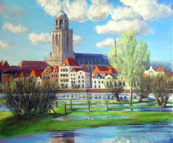 "Deventer - Hoog water" (2009) - 100 x 120 cm - gemengde techniek op doek