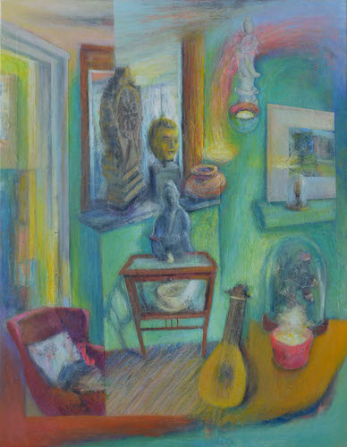 "Smallepad - Interieur met luit" (2022) - 90 x 70 cm - gemengde techniek op doek