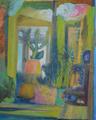 "Interieur met cactus" (2022) - 28,5 x 23 cm - gemengde techniek op papier