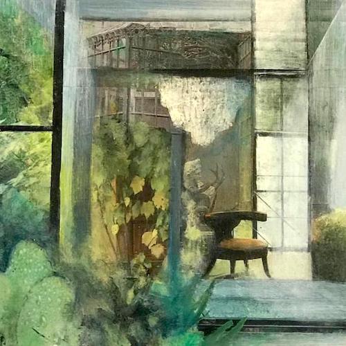 "Interieur - Verdigris" (2021) - 20 x 20 cm - gemengde techniek op paneel