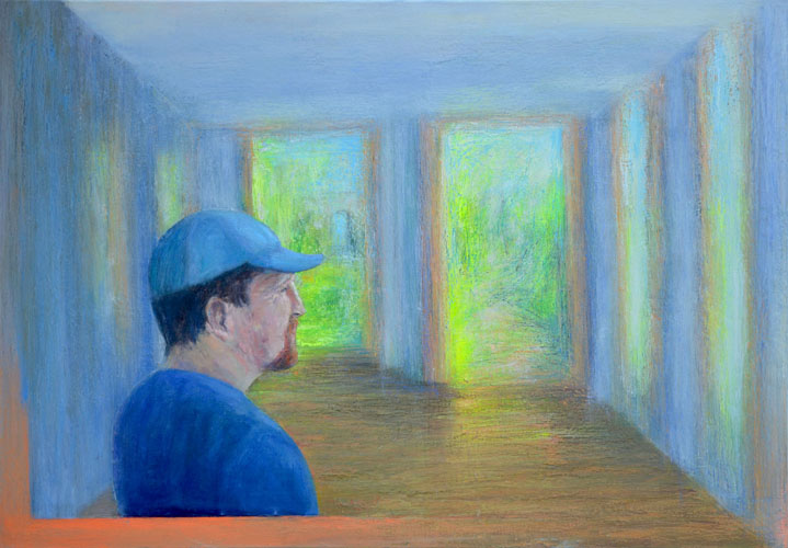 "Het vertrek I" (2017) - 70 x 100 cm - gemengde techniek op doek