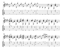 Bladmuziek Veel eigen composities zijn uitgeschreven als bladmuziek in normale gitaarnotatie en gitaar-tabulatuur. Onderstaande bladmuziek is gratis voor eigen gebruik te downloaden, maar mag niet verder verspreid worden of voor commerciele doeleinden worden ingezet. Wilt u een compositie gebruiken voor eigen opname, optreden of als lesmateriaal? Graag, maar neem dan wel even contact op om de voorwaarden te bespreken. Solo-arrangementen van "12 Significant Others" 01 - Change of Heart 02 - Hangfire Blues 03 - Sem 04 - Nachtrust 05 - Shaggy dog (part one) 06 - John Fahey 07 - Logan's Birth 08 - Wooden Wallpaper 09 - Umbilical Chords 10 - Wessel 11 - Stamp 12 - Insignificant Other Losse gitaarcomposities 01 - Akke 02 - Duotoon 03 - Tyrannosaurus Ed |